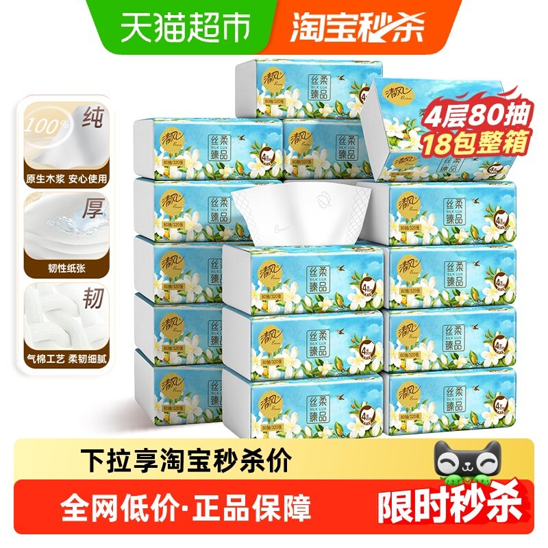 清风 花萃抽纸4层加厚18包