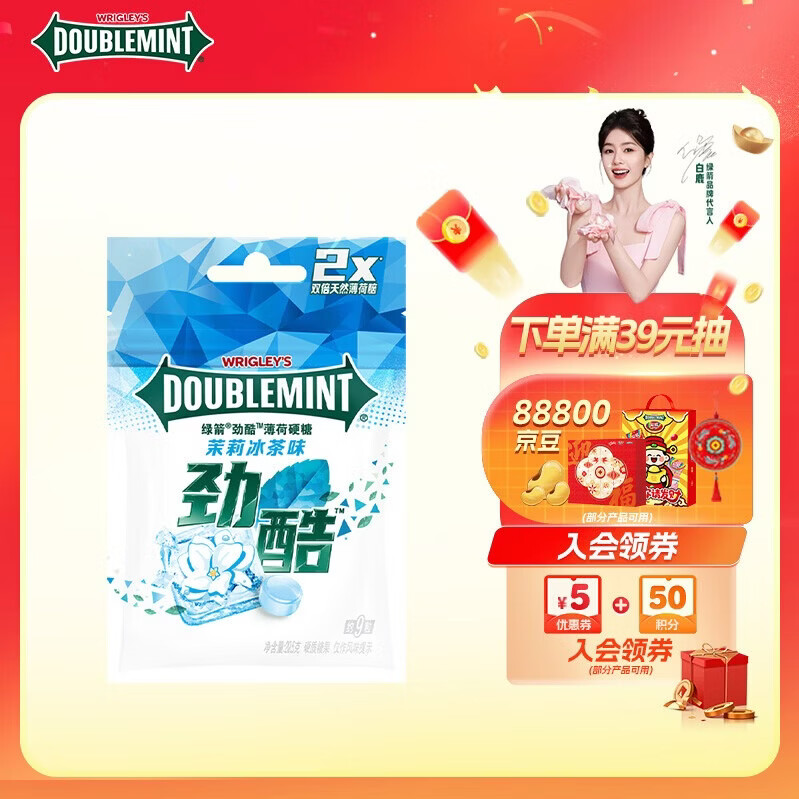 绿箭 劲酷薄荷糖茉莉冰茶味约9粒/袋20.5g,2.1