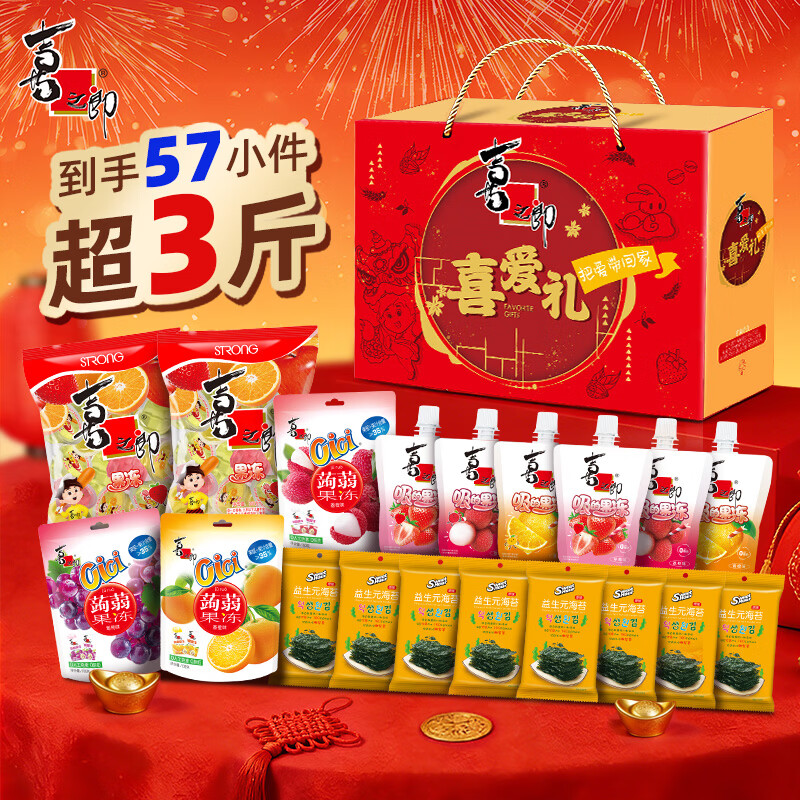 领99-20券 喜之郎年货零食礼盒 各拍1件64.8亓 折32.4/件