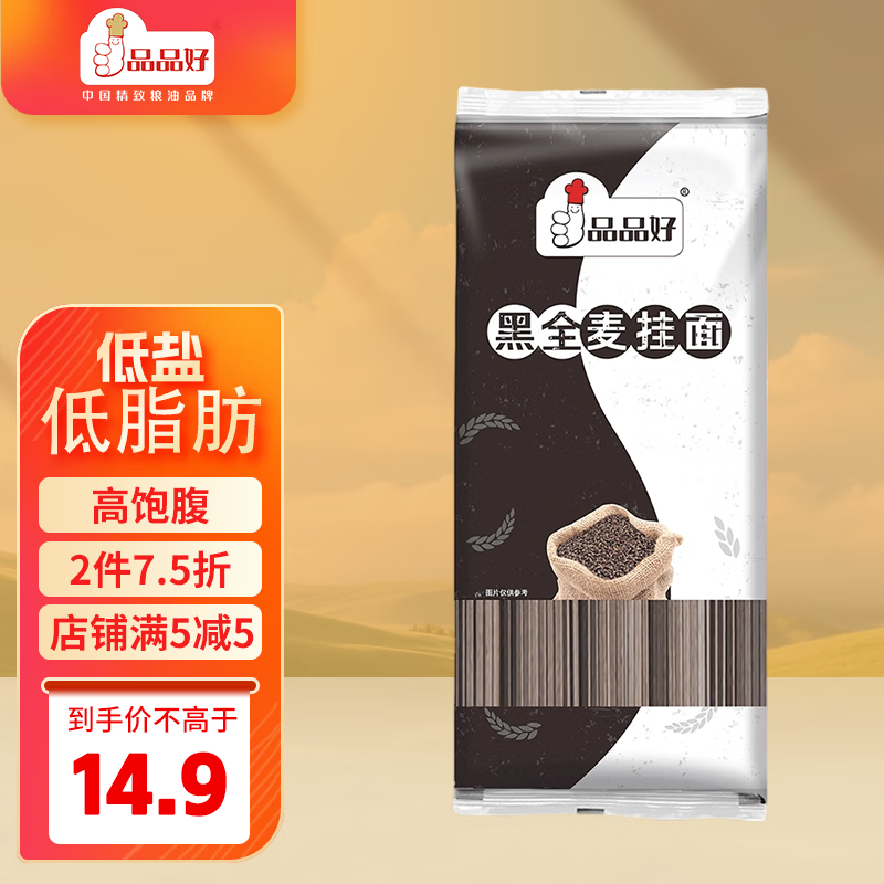 品品好黑全麦挂面500g低盐低脂肪 如砸3奍叠1首单3.9亓