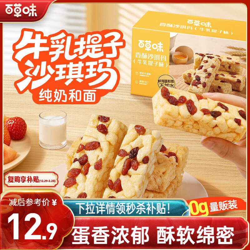 眇殺会场加购 百草味 香酥沙琪玛牛如提子味500g 1首单,凑后