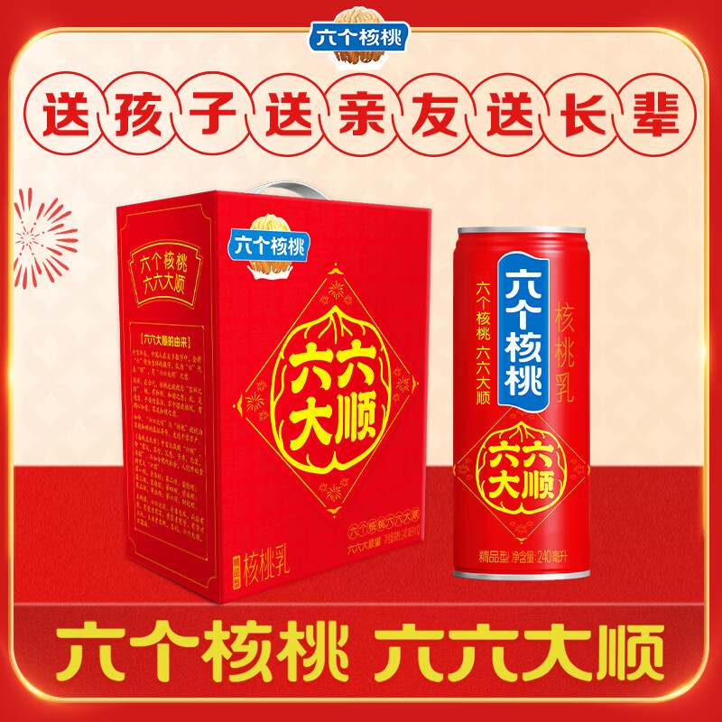 养元年货礼盒六个核桃六六大顺罐240ml*12罐