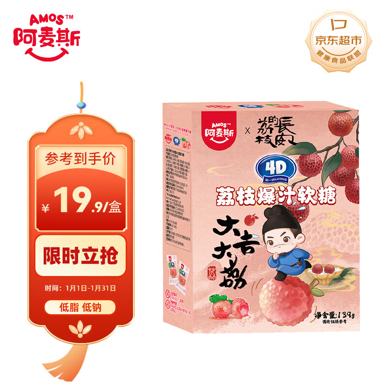 阿麦斯 爆汁软糖x长安的荔枝联名糖果 139g