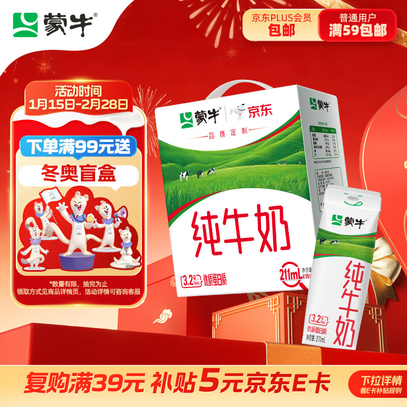 蒙牛全脂纯牛奶211ml*10盒