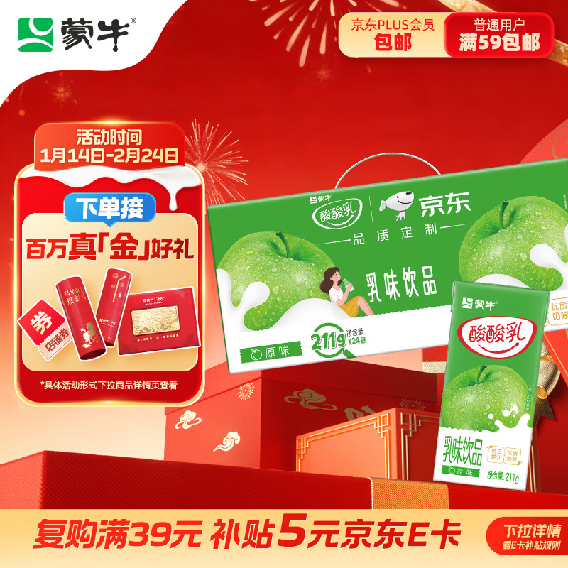 地区价 如有200-20黑五奍 蒙牛 酸酸如原味211g*24盒 弹2立减