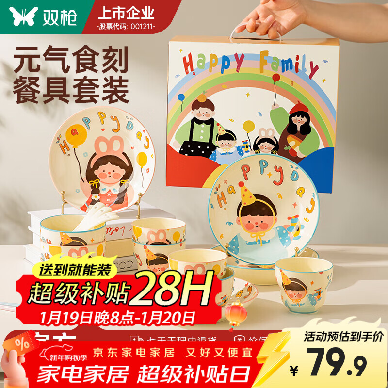 Plus买499-40家居券 双枪陶瓷餐具五件套 41.6亓 凑