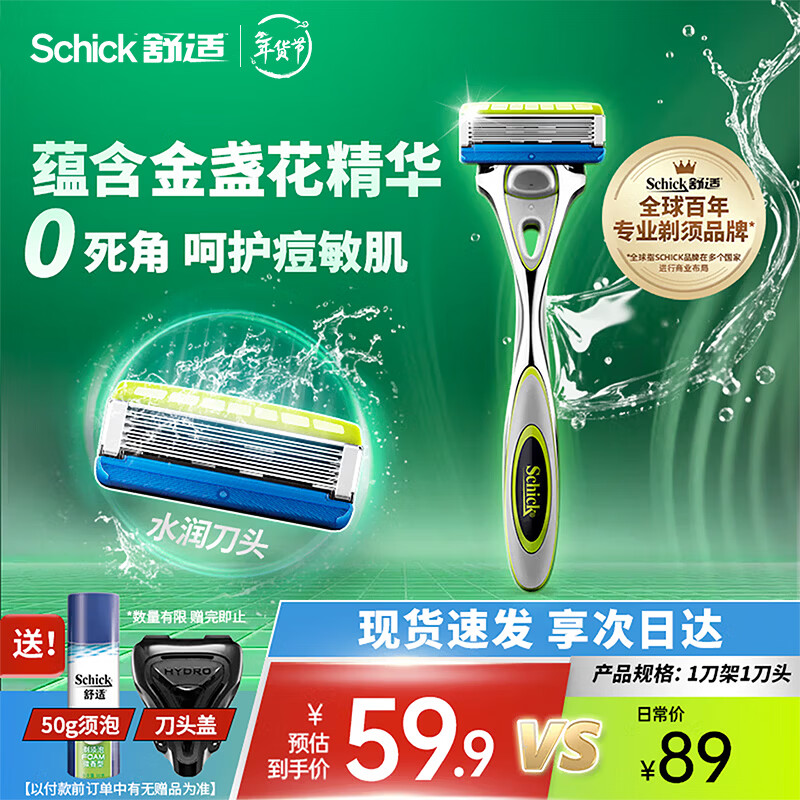 舒适痘敏肌 水次yuan5基础手动剃须刀 5层刀片 1刀架1刀头 入会14