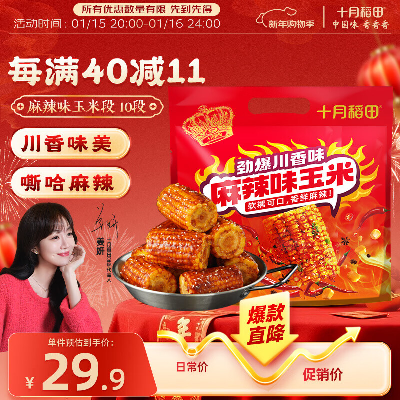 6.9元十月稻田 麻辣味玉米段 10段 2斤 ,入会价,凑200-20