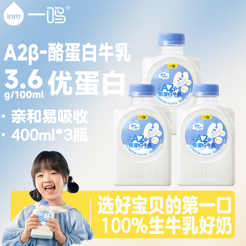 一鸣新鲜A2β酪蛋白 牛奶400ml*3 2首单,凑后6.82亓 凑