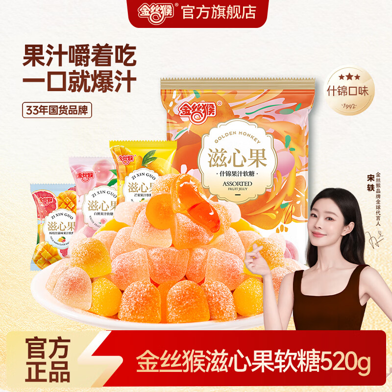 先领40-15卷 【自营】金丝猴 滋心果软糖520g 买2件28.6亓