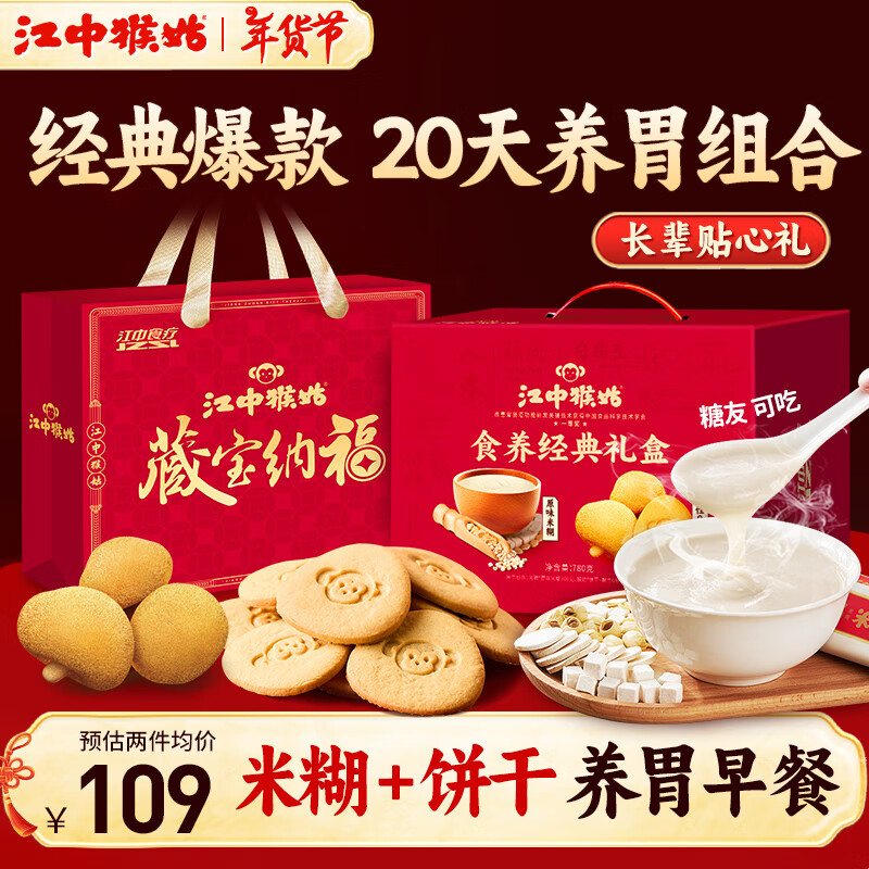江中猴姑 0糖饼干米糊组合780g 69.9亓自营包邮,日常109亓 *
