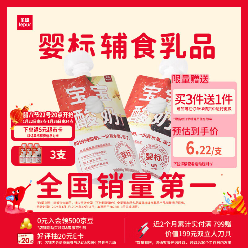 叠1首单,收藏加购 乐纯婴标宝宝酸奶山药香蕉50g*3支 试用会场,找