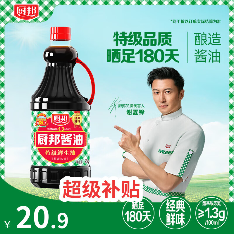厨邦 特级鲜生抽酱油1.95kg 20.9亓自营包邮,新客减2亓 *优质