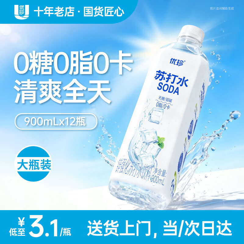 先加入店铺会员 再领75-31补帖卷 【自营】苏打水900ml*12瓶