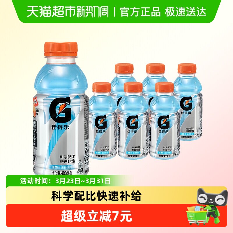 武汉等地区有补贴7佳得乐蓝莓味运动饮料400ml*6瓶/ 网页链接/ tao金币页面加购拍1件vip 金币10.02其它地区创建有地区价的地址,商品标题右侧选择“送礼”,小号领取填自己地址 试试