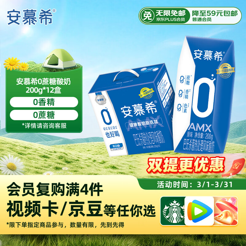 先领8折卷 【自营】安慕希 0蔗酸奶12盒 洁算选云闪付plus首购3