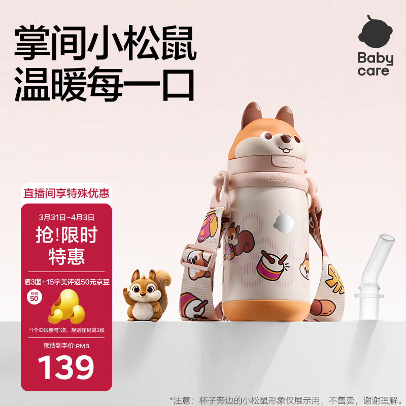 babycare婴儿小松鼠 保温杯背带款450ml 晒图返50元京豆 到手