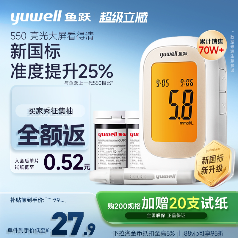 鱼跃550血糖仪测试仪 50试纸