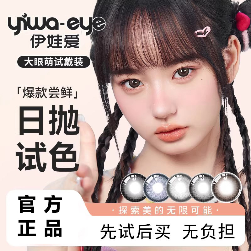 1试用 伊娃爱日抛美瞳试色2片装杏仁奶糖次抛
