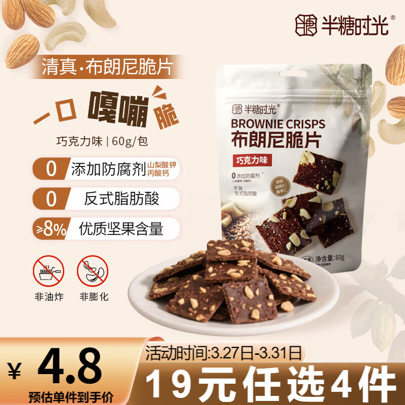 半糖时光布朗尼脆片 60g/袋 弹2立减,4件2.95一件 湊单