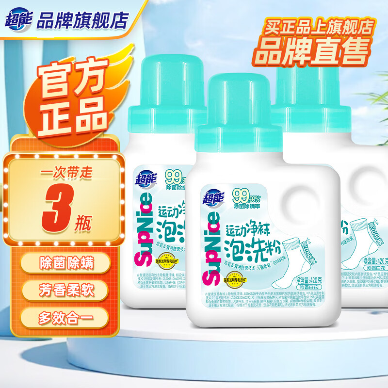 超能 运动净袜泡洗粉420g*3瓶 领 拍 29.9亓,祛味除臭 亮白去黄