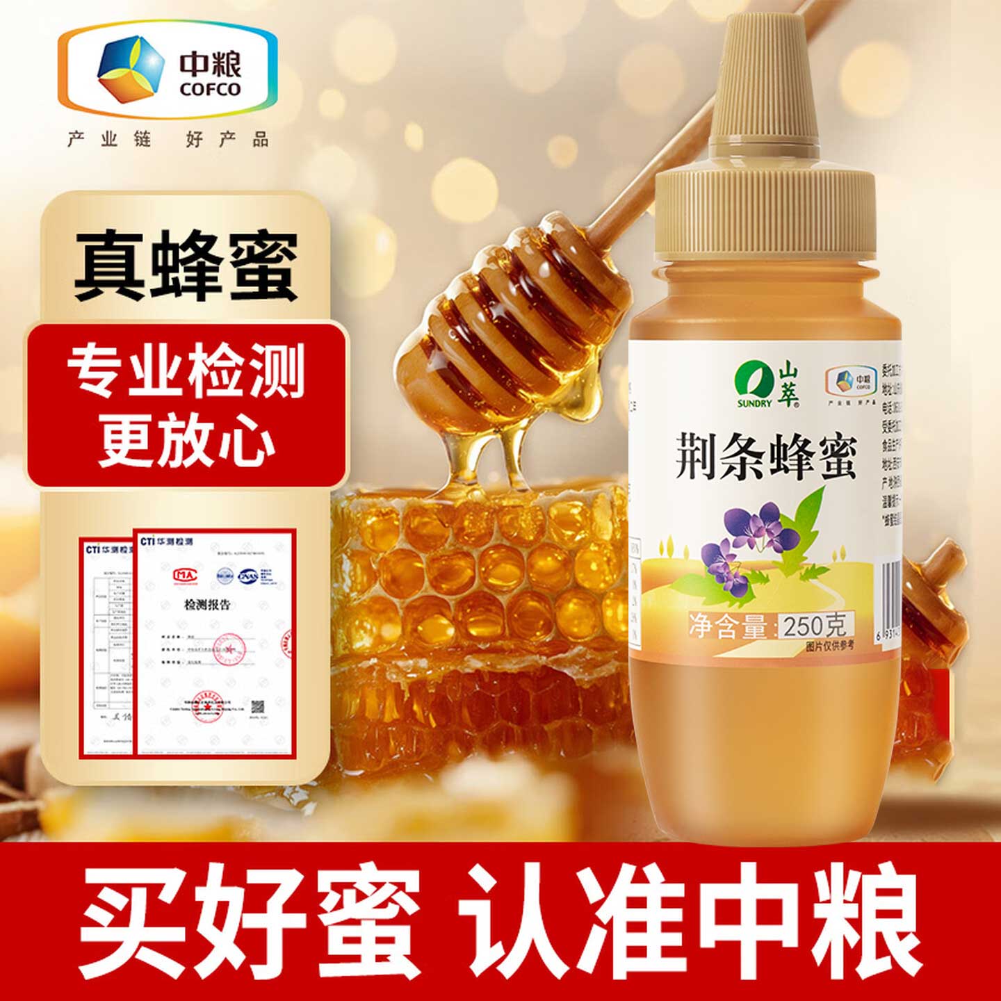 砸或领奍中心12.1-12奍 山萃 中粮荆条蜂蜜天然野生挤压瓶250g