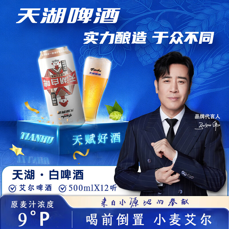 天湖 9度精酿白啤500ml*12听 Plus新客买2件86亓自营包邮