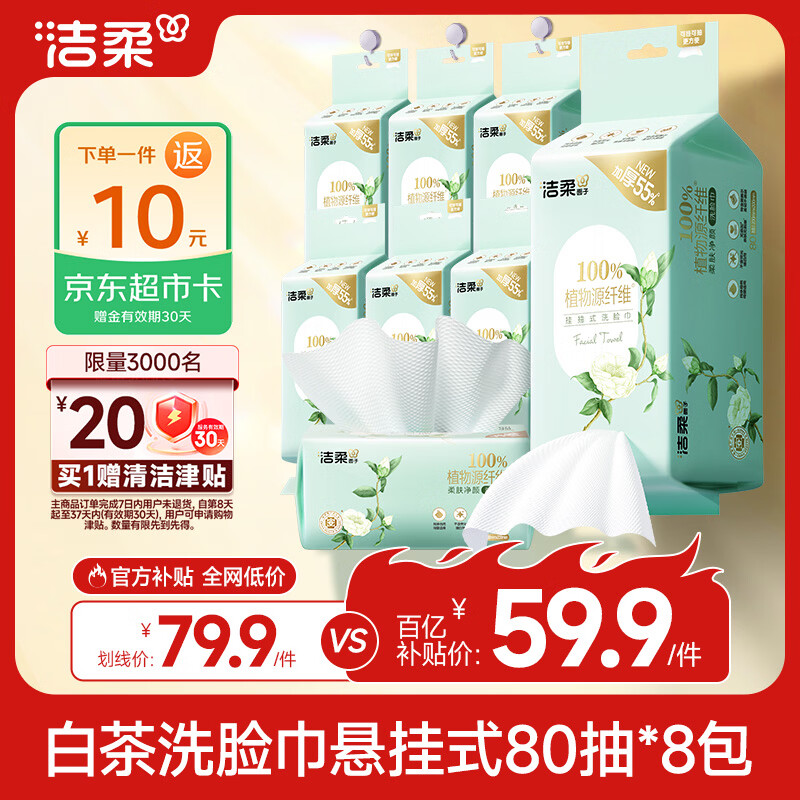 洁柔洗脸巾白茶悬挂式80抽*8包可挂可抽 https://u.jd.com/jGqsPBx