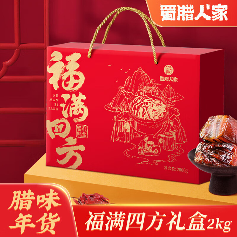 200-20 黑五奍 蜀腊人家福满四方礼盒2kg 学生价,31.08