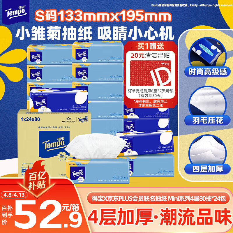 得宝小雏菊抽纸80抽*24包 拍3件158.7亓 反60亓津贴 反7.9