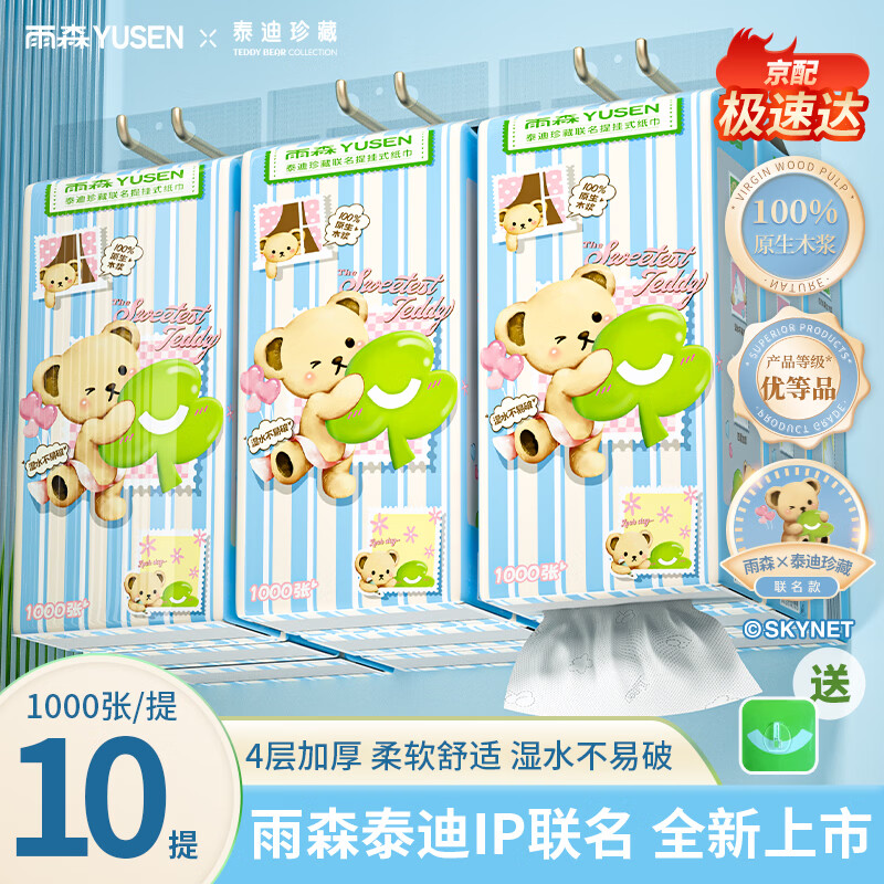 百亿补贴-加倍补加购 雨森 泰迪珍藏悬/提挂抽纸1000张10提,1.29