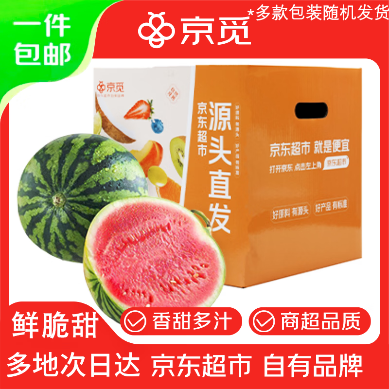 京觅 无籽麒麟西瓜净重5-6斤 29.8亓自营包邮,源头直发 *皮薄肉厚