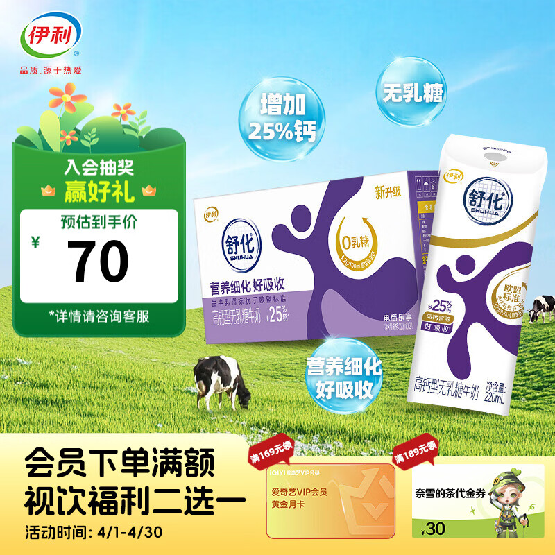 伊利 舒化高钙/全脂牛奶24盒 任选2件付99亓,京仓发货 *折2亓/