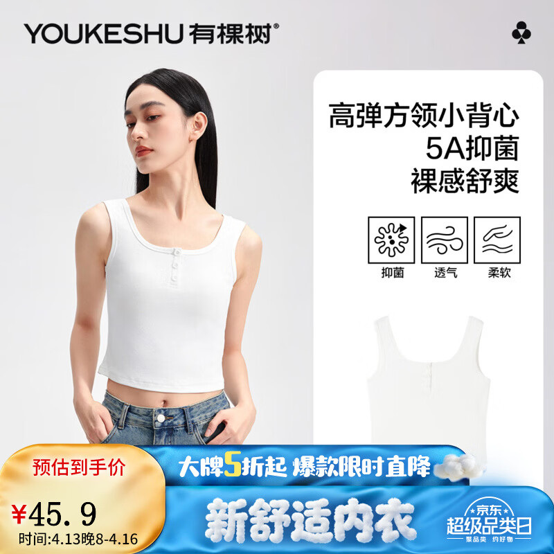 先领5折补帖卷 45.9亓 女士螺纹方领背心 45.9亓 女士肌底衣短