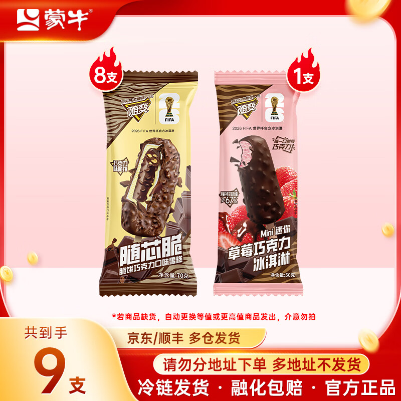 蒙牛 全随变经典冰淇淋9支装 任选5件89亓,才折1.9亓/支 *超多种