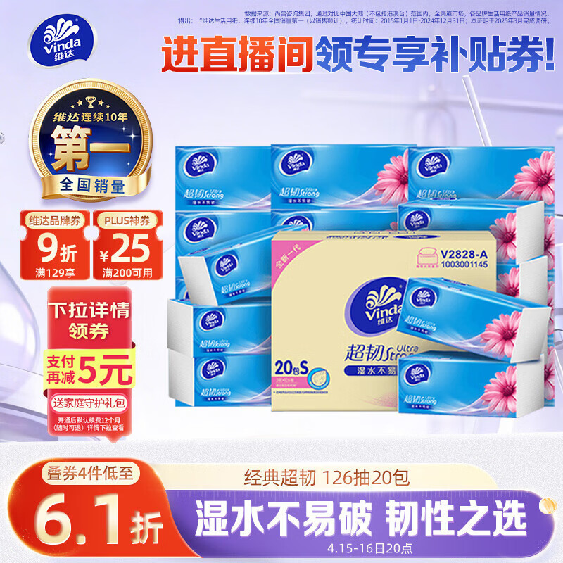 plus先领200-25卷 【自营】超韧抽纸126抽*20包 Plus