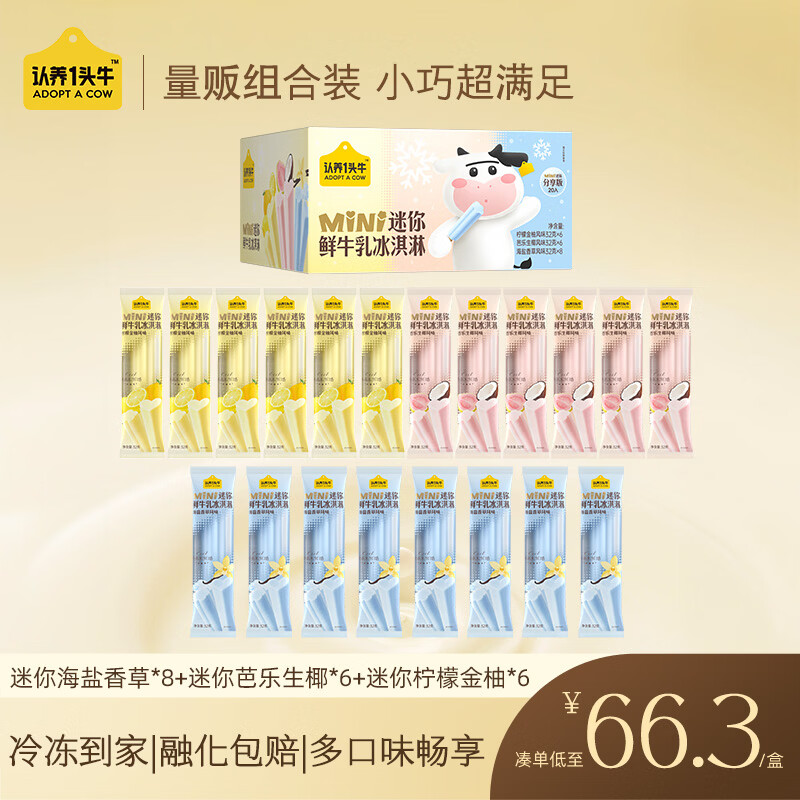 【自营】认养一头牛 鲜牛乳 冰淇淋多种口味20支 买2件79亓,才折1.