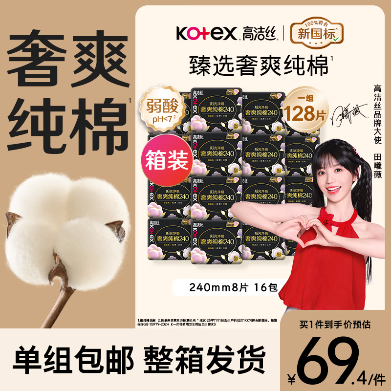 高洁丝 奢爽日用卫生巾128片 69.4亓自营包邮,可拍多件 *反超.市