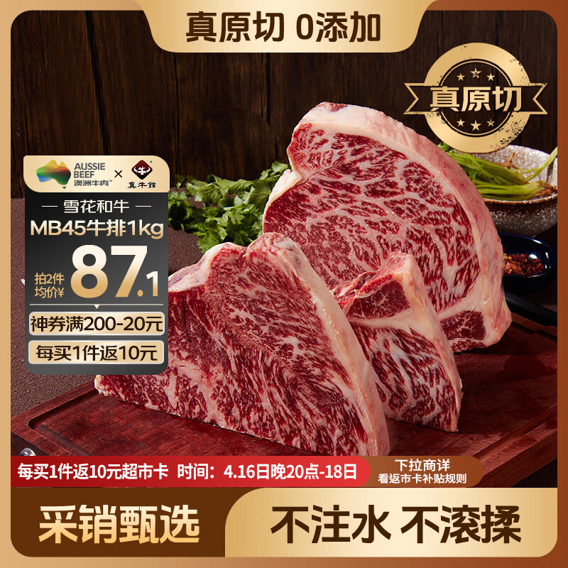 澳洲和牛肉MB45原切牛排2斤 买2件实.付194.2亓自营包邮 *赠2