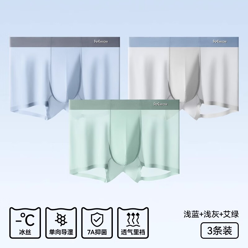 先领39-30补帖卷 猫人 男士冰丝7A抗菌内裤3条 19.9亓,pl