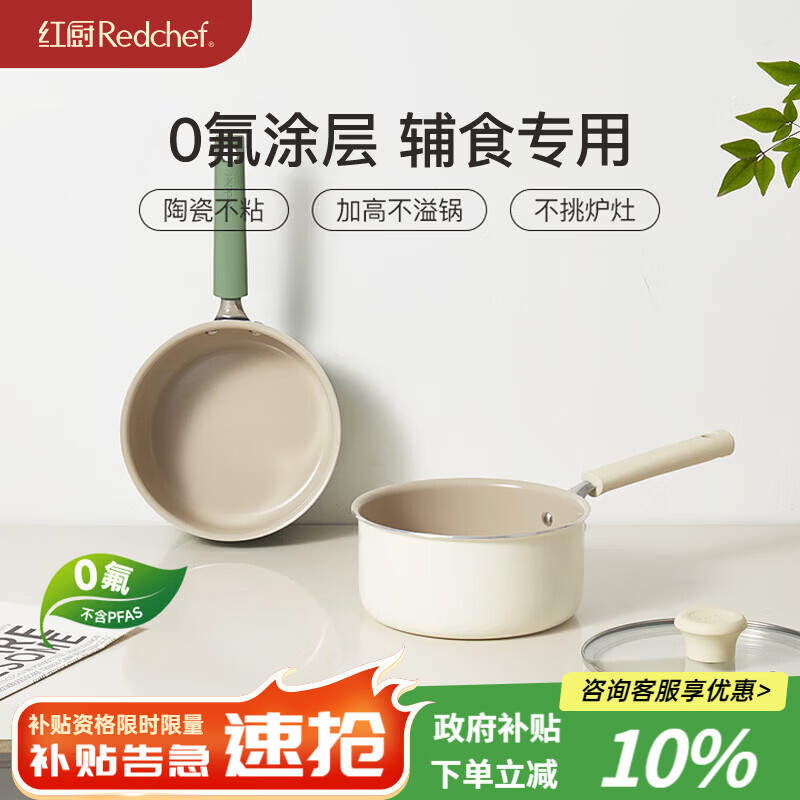 红厨锅具领5折券 辅食锅不粘锅 44.5亓 锤纹大肚铁锅带盖