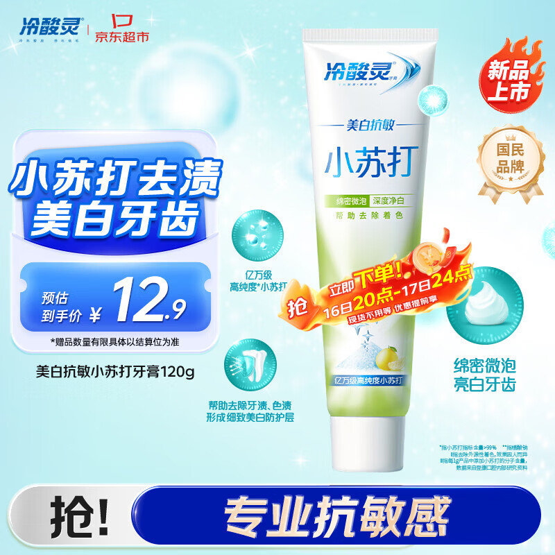 冷酸灵美白抗敏牙膏120g 拍3件31.9亓 返12超市卡 赠10