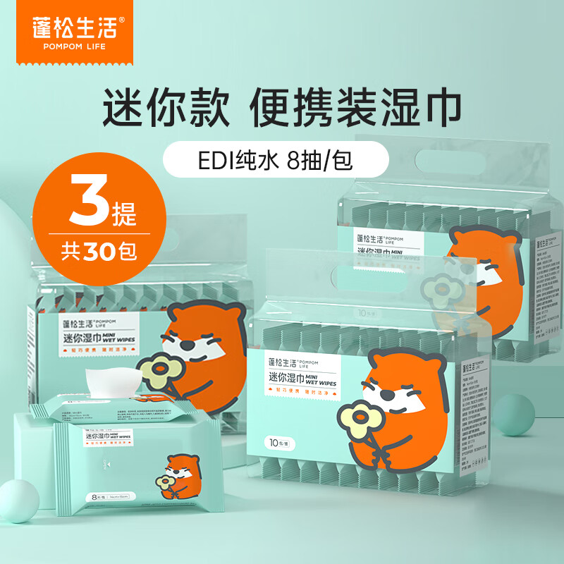 蓬松生活 清洁湿巾8抽*30包 领 拍 12.9亓,不刺.激 小嫩脸随便擦