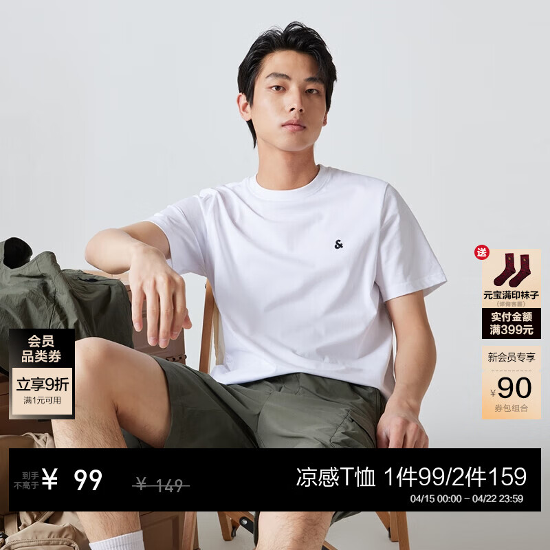 Plus领200-25补帖卷 杰克琼斯 男纯色凉感短袖T恤 plus选