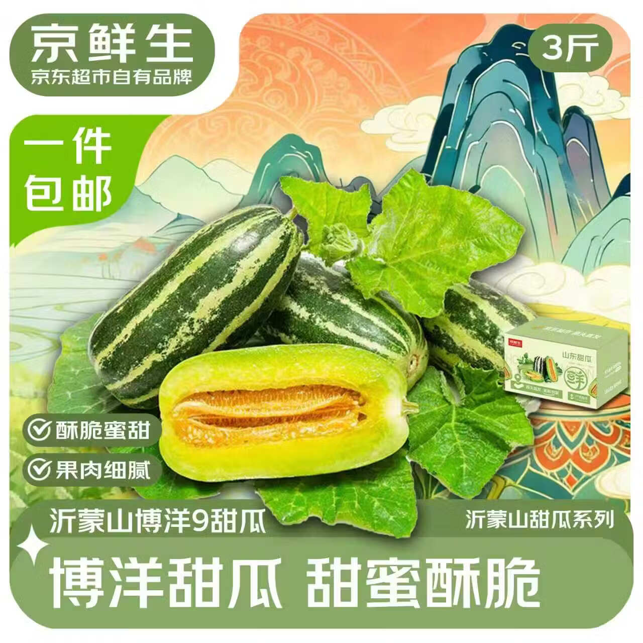 京鲜生 博洋9号甜瓜净重3斤 21.9自营包邮,plus20.6亓 *口