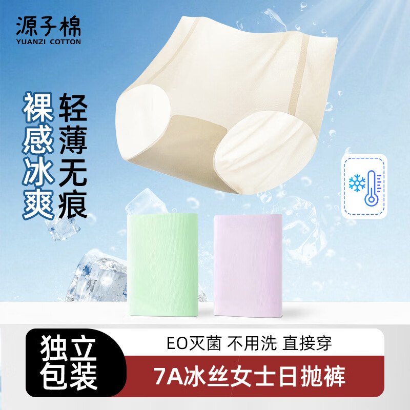 源子棉 女冰丝一次性内裤3条 3.1亓 云费,买2件同忦 *EO灭菌 母