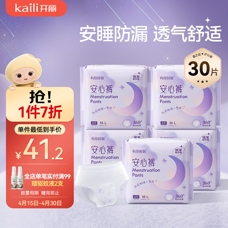 开丽(Kaili)安睡裤 M-L码 6片*5包
