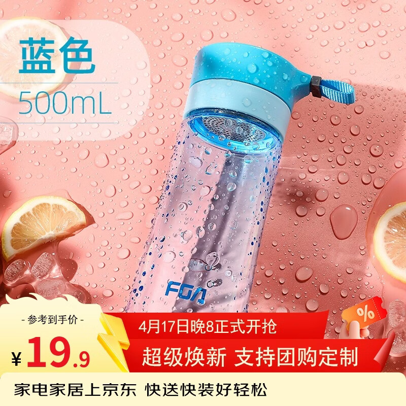 先领5折补帖卷 9.9亓 清新塑料水杯500ml 24.9亓 图图刻度