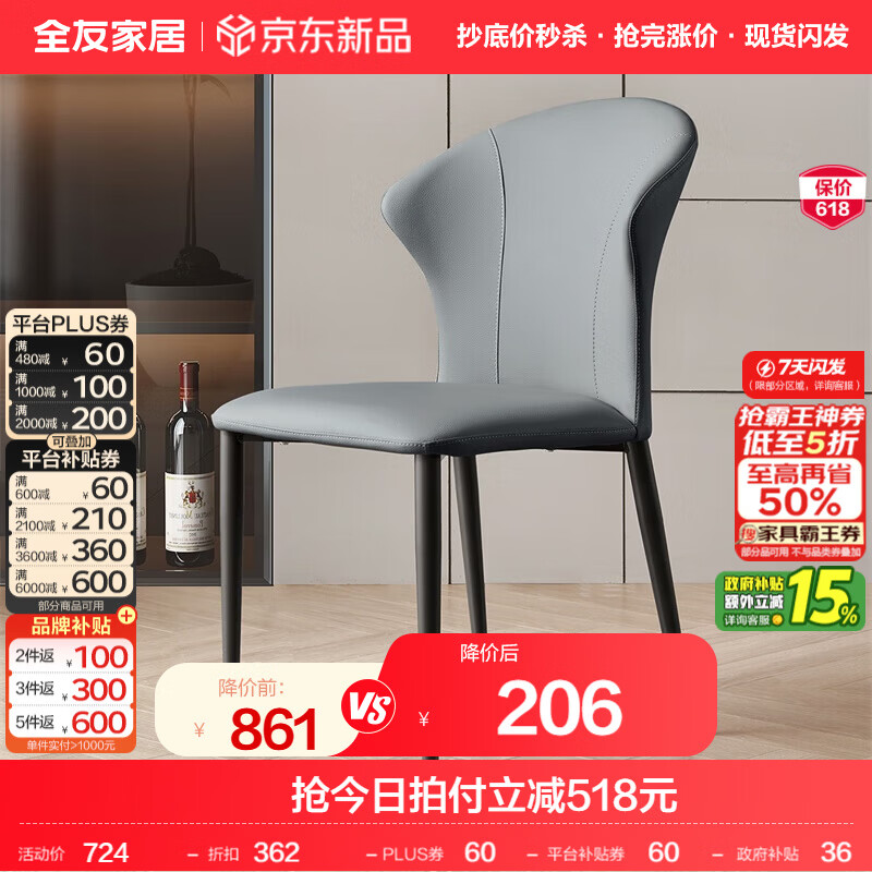 如有600-300家具膨胀奍 全友家居餐椅2把湊后,0 湊1