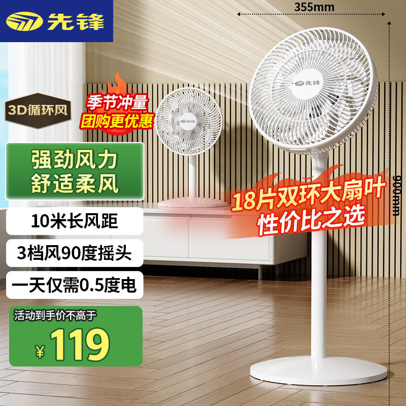 先领100-24补帖卷 先锋 空气循环扇台地电风扇 98.4亓自营包邮